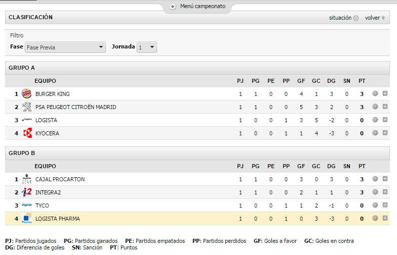Partido extraño, un partido que de inicio se suponía que tendría un claro ganador: nuestro equipo ya que sobre el papel debía ganar con facilidad. Pero es verdad que teníamos varias bajas importantes, como la de nuestro delantero estrella Alfonso, el cual siempre proporciona un buen número de goles. Para nuestra sorpresa el partido arrancó mal para nosotros con dos goles rápidos de Logista, que nos hizo remar a contracorriente en gran parte del encuentro, el segundo de ellos impresionante, un gran tiro desde la mitad del campo. Tras un par de grandes aciertos, venía la desgracia para Logista, un gol en propia puerta que tiraba un poco por tierra la gran primera mitad que estaban realizando, con ello, no terminaban de matar el partido y nos daban esperanzas. Con un 2-1 a favor de Logista comenzábamos la segunda parte, y nuestro equipo se despierto y volvió a su estilo, más contundente, más organizados y dispuestos a no perder este primer partido importantísimo. Empatábamos rápido, con un gol de penalti que nos daba alas e nos impulsaba para lograr la victoria; tras este gol pusimos toda la carne en el asador y metimos otro gol que nos ponía por delante. Logista, que es capaz de lo mejor y lo peor, estaba entonado. Seguían con mucha intensidad y sin dejar de mirarnos a la cara . Tras una jugada de combinación y empuje metieron el tercero y volvían a poner muchísima emoción a este partido intenso, con mucho trabajo para los defensas, que tenían que esforzarse al máximo, sin perder la concentración. Tras unos minutos inciertos, nos pusimos el mono de trabajo, y comenzábamos a realizar jugadas más acertadas y contundentes, con ello metimos primero un gol que nos ponía otra vez por delante, tras este, un gol más, aún más decisivo, ya que enfriaban a nuestro rival y conseguimos los 3 puntos para ponernos al frente de nuestro grupo en la Copa de las Empresas. Destacar la gran actuación de Sergio Fleirez de CPL, que se echó el equipo a la espalda consiguiendo un importante hat-trick.