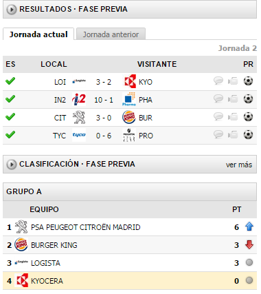 Jugaron: Thibaut (PSA MADRID), Benjamín (PSA MADRID), Roberto Blázquez (PSA MADRID), Joaquín Andrés (Marcas), Cesar Sanz (Marcas), Rubén Montes (PSA MADRID), Ramiro Mesonero (PSA MADRID), Daniel Patiño (PSA MADRID), Raúl León, Alfonso.